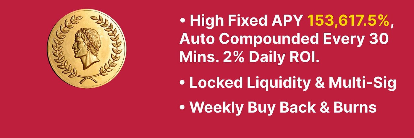 - Simple and Safe — We give auto-staking solidly in your wallet when you buy $CAESAR. Don’t bother moving your tokens to our site. From the moment you get, you are marked, and set to get rebase rewards. The least demanding auto-staking in DeFi.