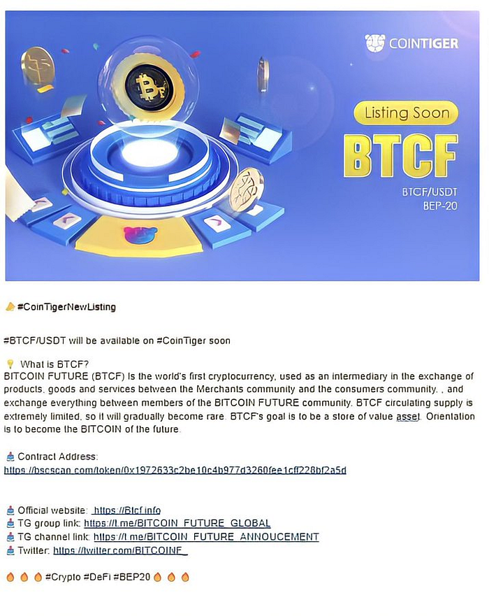 @BITCOINF_ $BTCF #Bitcoin Future #CoinTiger #Binance #Gems